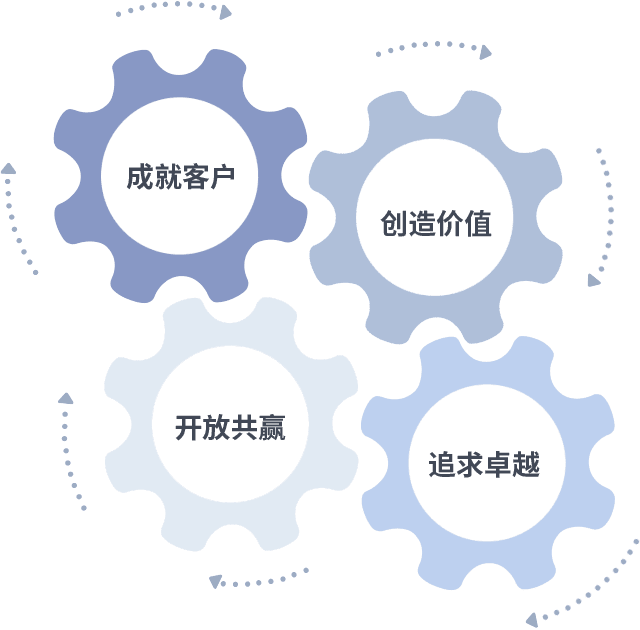 成就客户是一切决策的出发点,创造价值是衡量所有工作的标准,追求卓越是龙8做事做人的态度,开放共赢是龙8的格局也是最终的结果。价值观的齿轮环环相扣,推动着组织里的每个人不断向前。